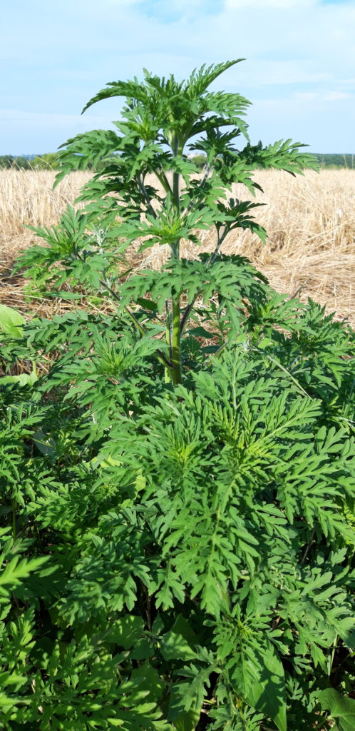 Le pollen d’ambroisie à feuilles d’armoise, émis de fin juillet à début octobre selon les conditions météorologiques, est très allergisant, quelques grains de pollen par mètre cube d’air suffisent pour provoquer divers symptômes chez les personnes sensibles. C'est pourquoi il est important de lutter contre le développement de cette plante.